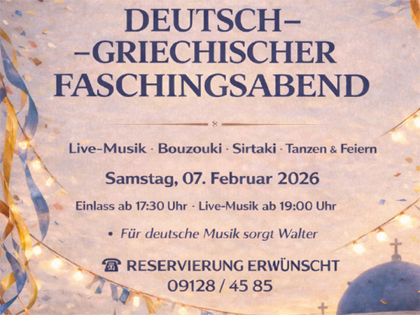 Ein reichhaltiges Getränkeangebot lässt Ihnen die Wahl vom gepflegten Bier bis hin zum griechischen Wein. Sonntags freuen wir uns, Sie mit unser original fränkischen Bratenküche in unserer Gaststätte bewirten zu dürfen.
